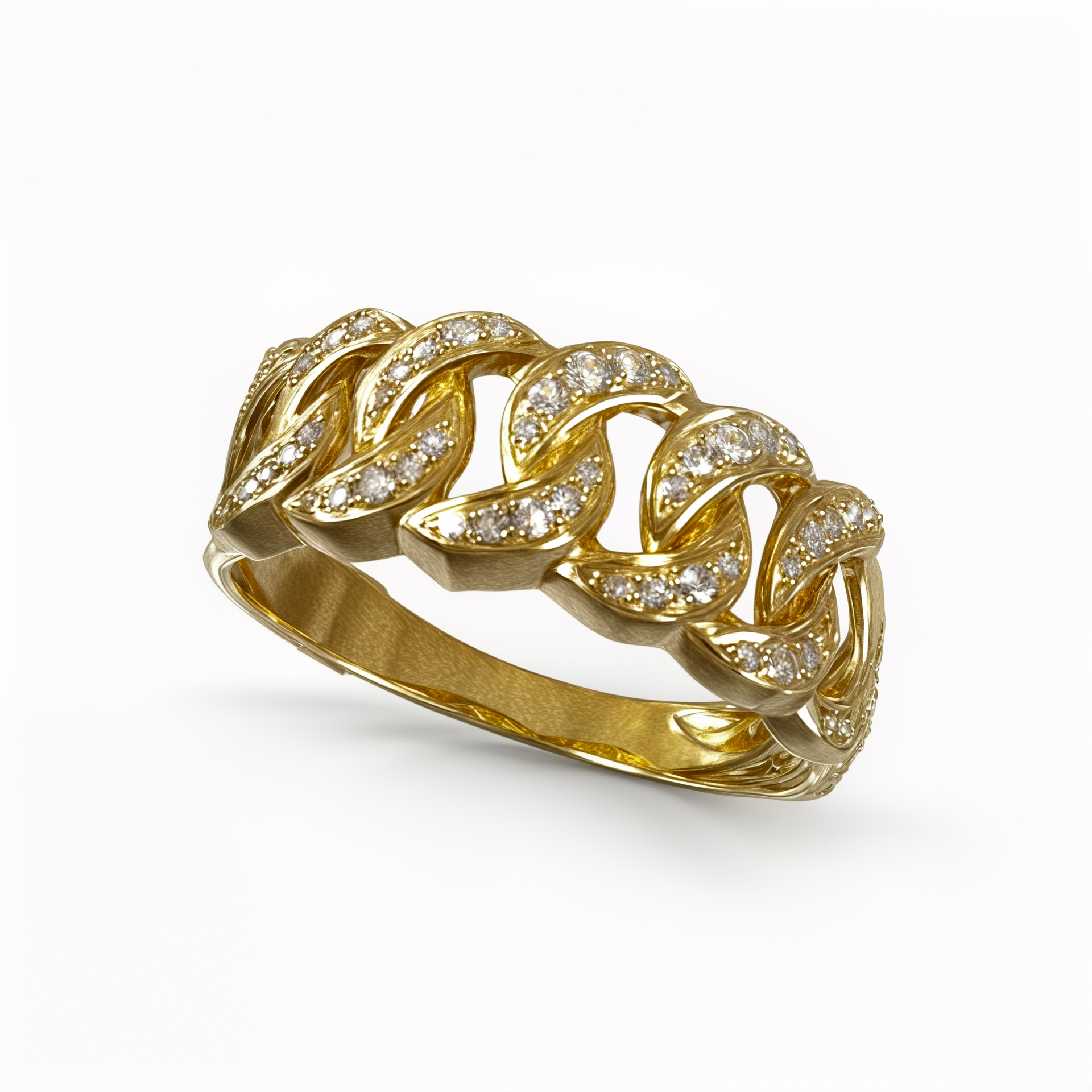 0.25CT 7MM Yellow Gold Diamond Cuban Link Ring