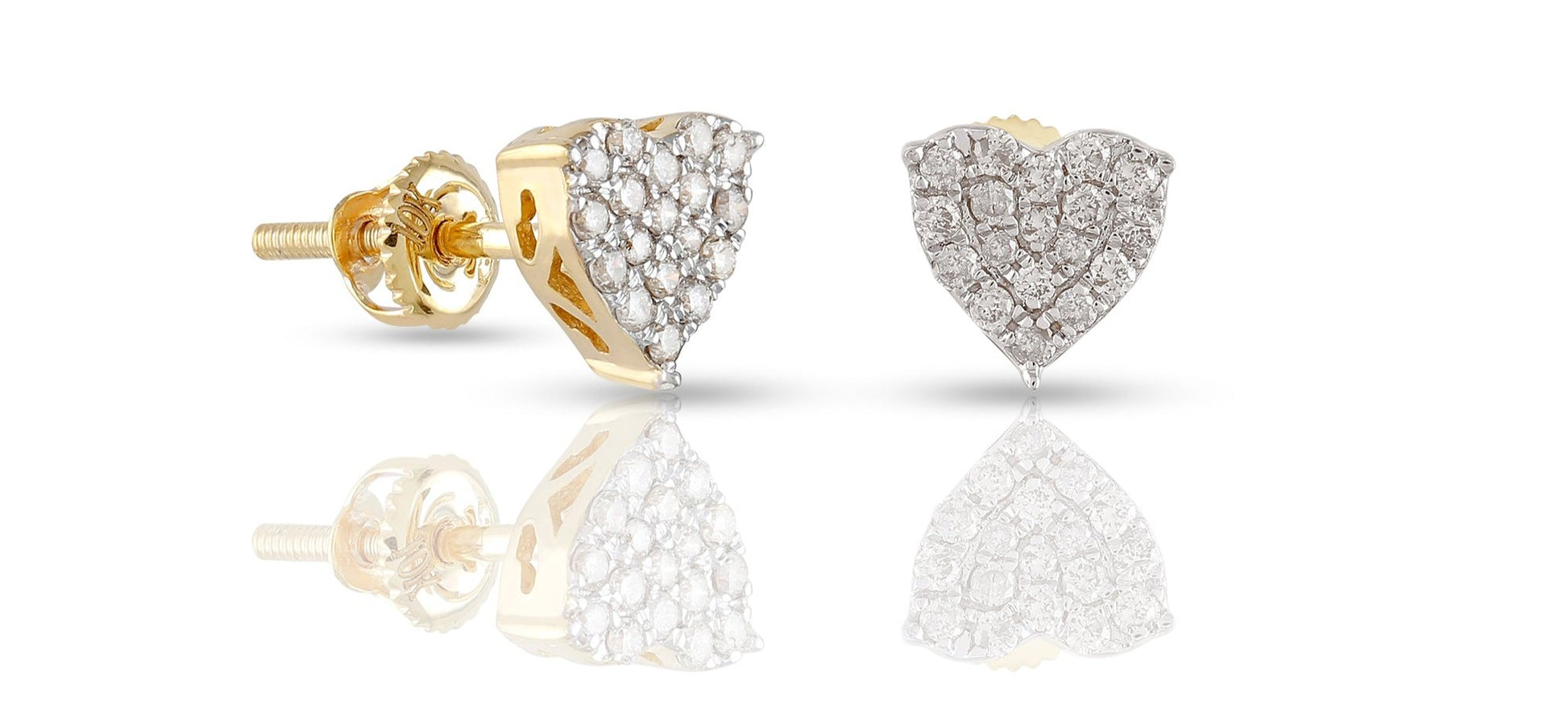 10K .27CT 7MM Diamond Heart Screw-Back Earrings