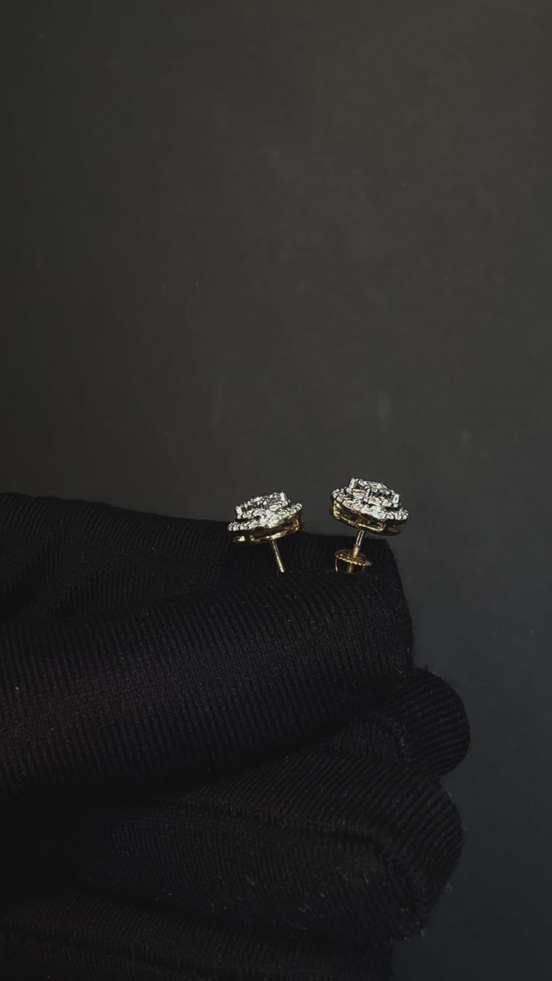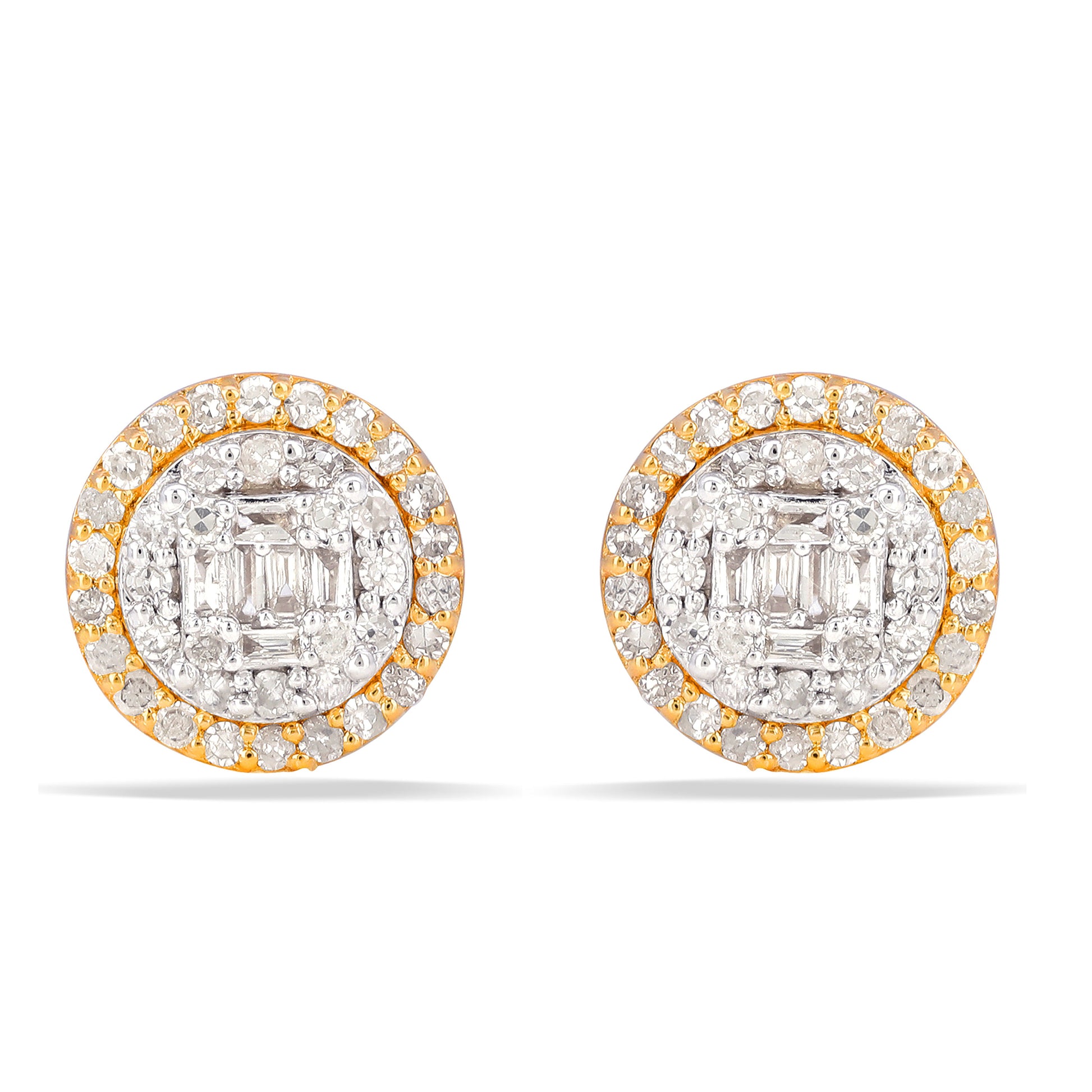 10K 0.50CT Round Diamond Baguette Screw-Back Earrings