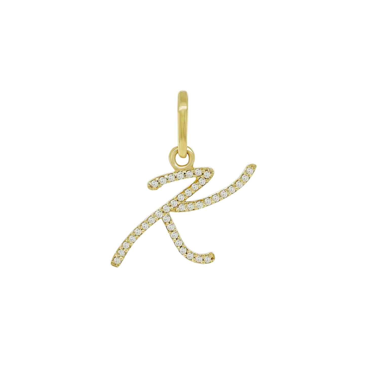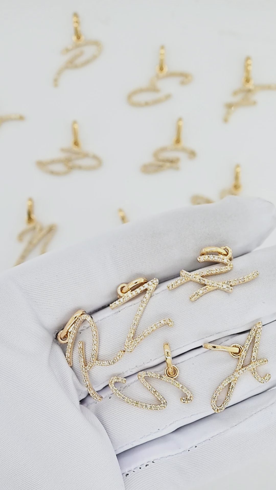 14K Yellow Gold Cursive Diamond Initial Pendants