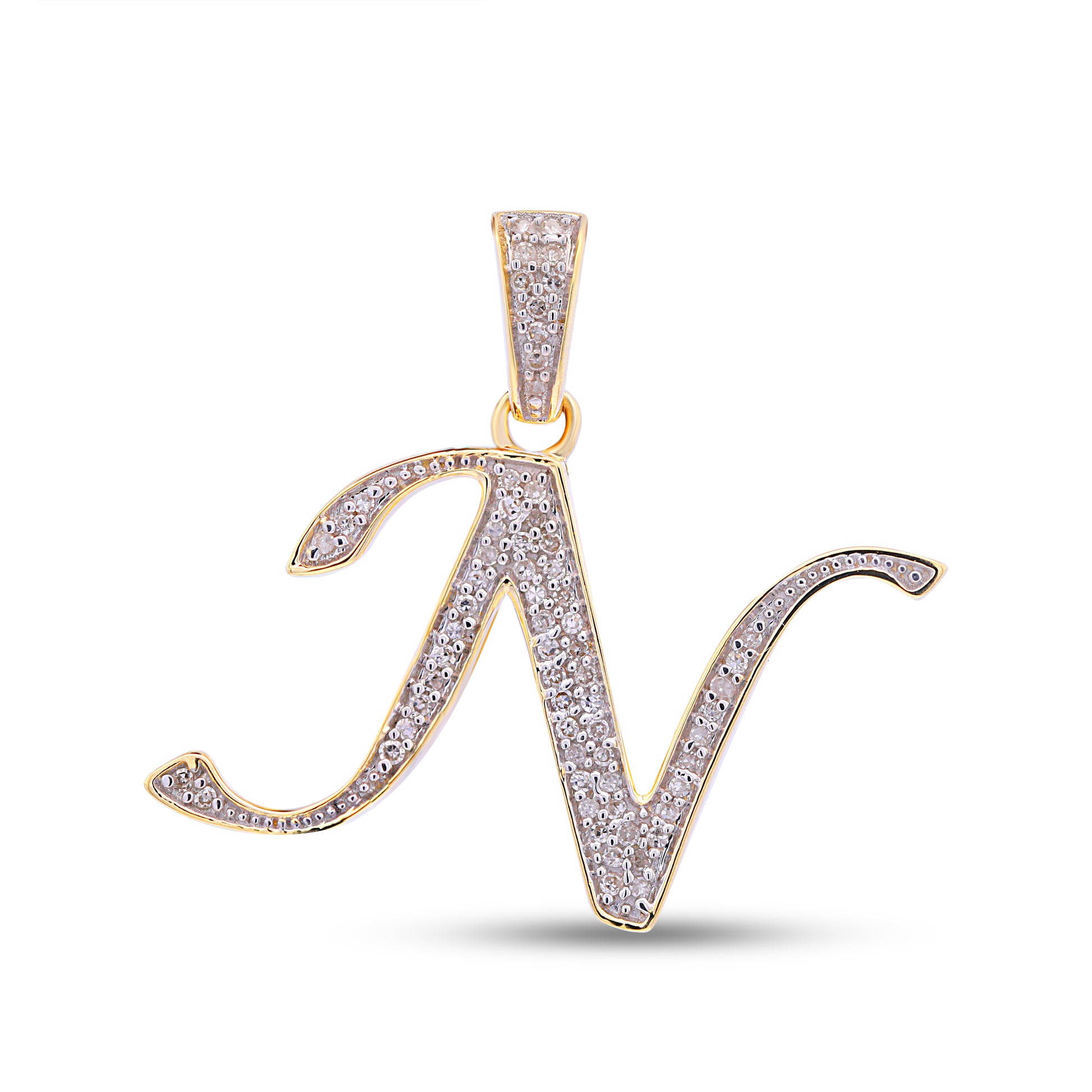 10K 1" Yellow Gold Diamond Cursive Initial Pendants