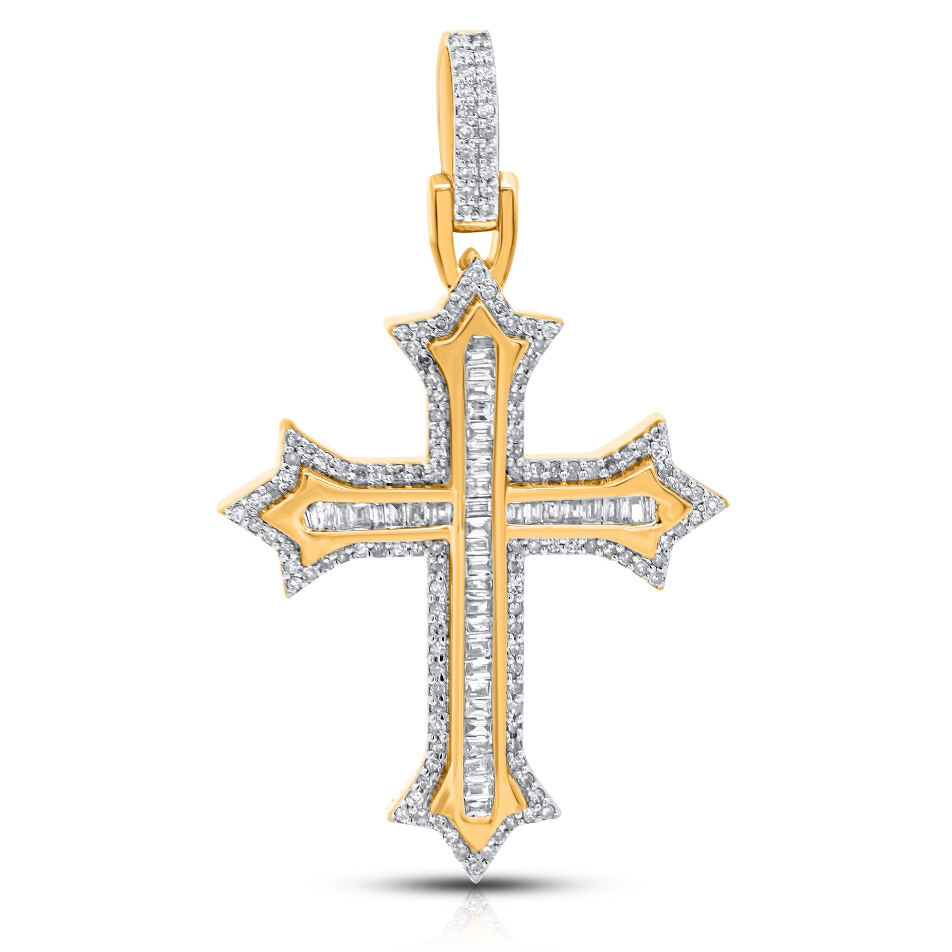 14K 0.48CT 1.6" Yellow Gold Baguette Diamond Cross Pendant