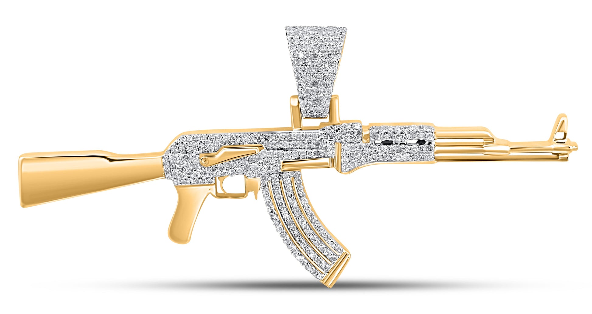 10K 1.05CT 2.8" Diamond AK-47 Gold Pendant