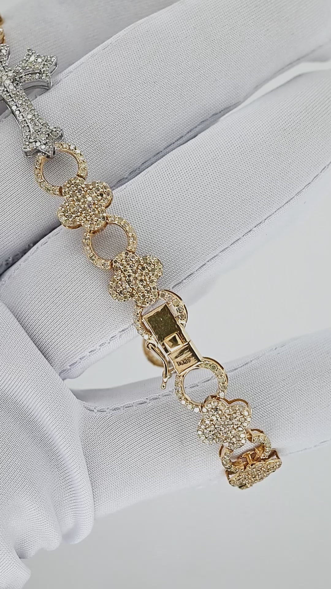 14K 18MM 3.9CT Two-Tone Gold Diamond Cross Bracelet