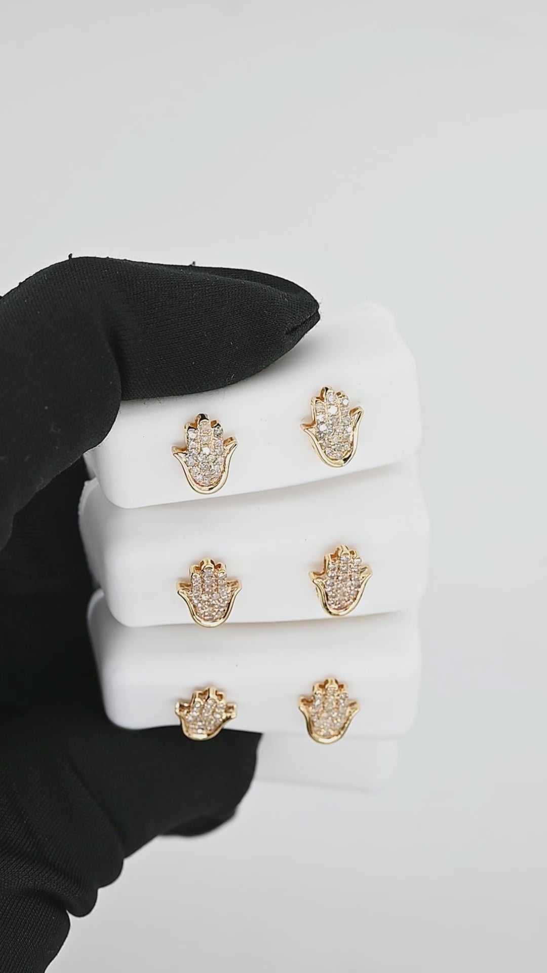 14K 0.28CT 10 MM Yellow Gold Diamonds Hamsa Screw-back Earrings