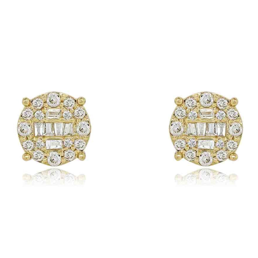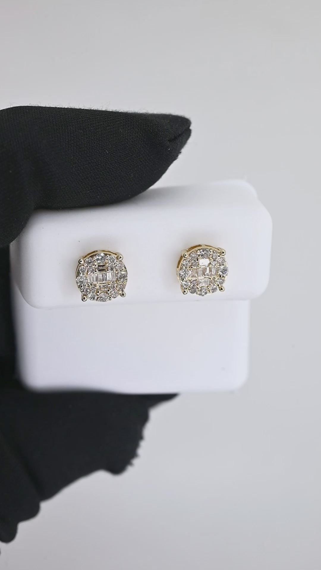 14K 0.47CT 8MM Round Diamond Baguette Screw-Back Earrings