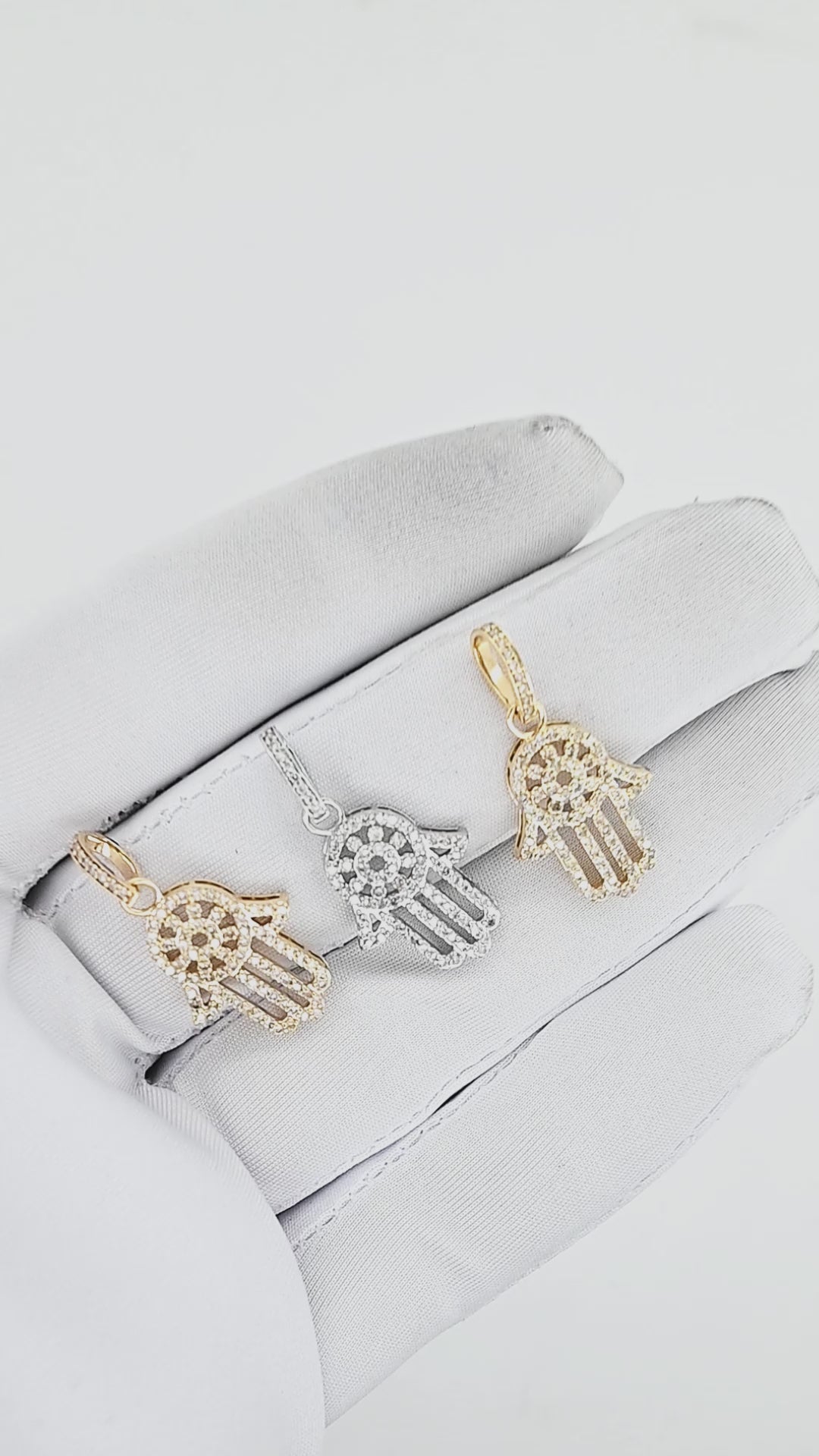 14K 0.53CT Yellow Gold Diamond Hamsa Pendant