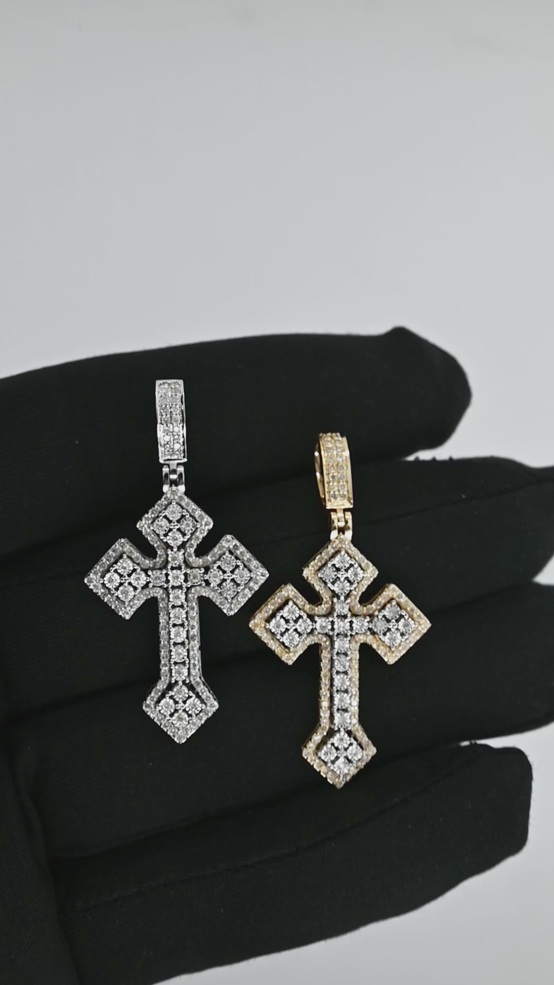 14K 0.79CT Two-Tone Diamond Cross Pendant